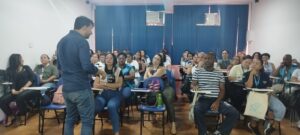 Nesta manhã do dia 09/11/2023, no auditório da OTICS Bangu, tivemos o quarto dia de aula da vigésima turma do curso introdutório para os profissionais da Atenção Primária da AP 5.1. Responsável por ministrar o curso foi, Raphael Azevedo – enfermeiro, Diretor do Centro de Estudos da CAP 5.1. Participaram 47 profissionais da Atenção Primária das unidades da AP 5.1, CMS Alexander Fleming, CF Antônio Gonçalves da Silva, CMS Eithel Pinheiro, CMS Waldyr Franco, CF Rosino Baccarine, CMS Catiri, CF Fiorello Raymundo, CF Kelly Cristina, CF Cristiani Vieira Pinho, CMS Manoel Guilherme da Silveira Filho, CMS Silvio Barbosa, CF Faim Pedro, CF Mario Dias de Alencar, CMS Catiri, CF Wilson Melo Santos.