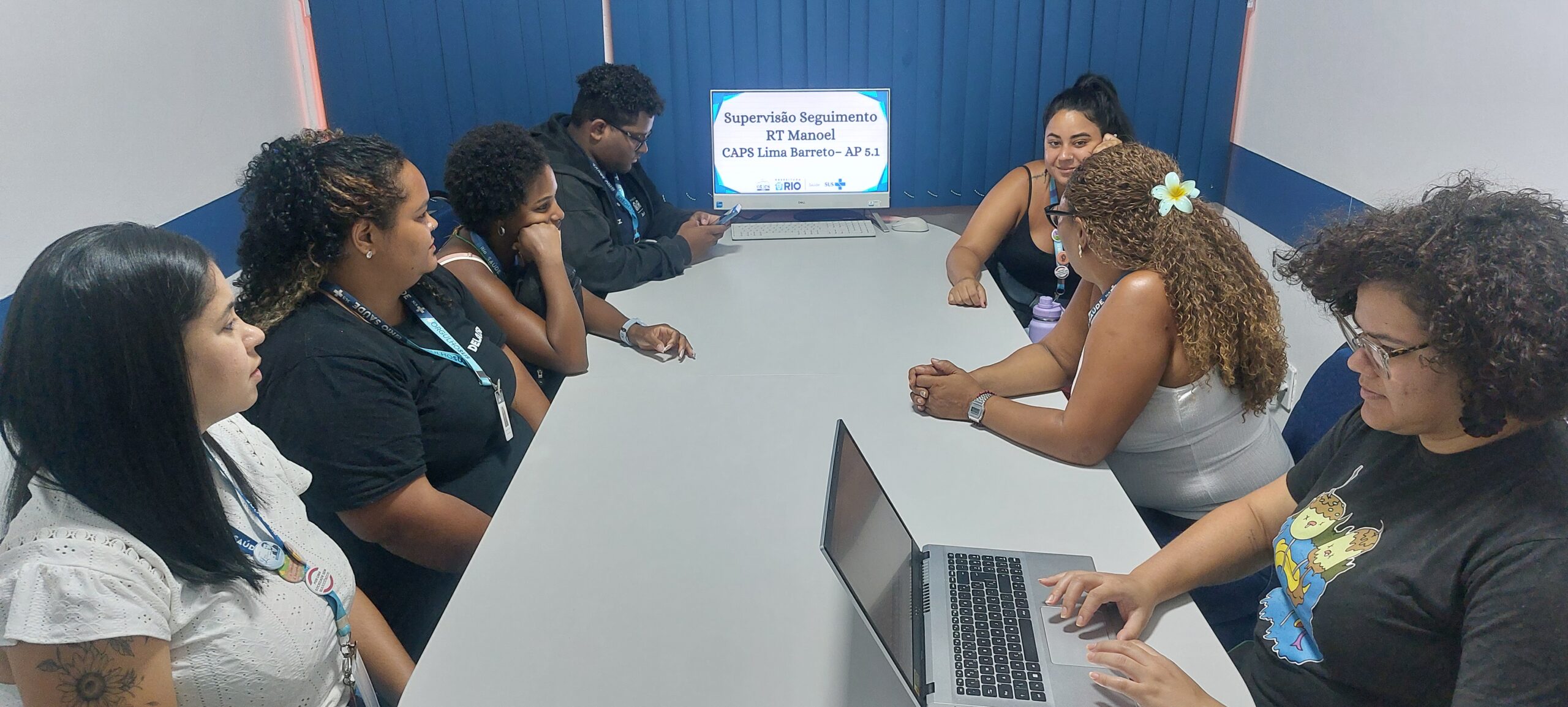 Na tarde do dia 7 de janeiro de 2026, na sala de tutoria da OTICS Bangu recebeu a supervisão RT Manoel do Serviço de Residência Terapêutica (SRT) do CAPS Lima Barreto – AP 5.1. A atividade contou com a participação de seis apoiadores (cuidadores) das residências terapêuticas, tendo como público-alvo a equipe de SRT. Durante o encontro, foram discutidos temas voltados à direção de trabalho e ao planejamento do processo terapêutico, com foco na qualificação da comunicação e na organização das práticas desenvolvidas nas RTs. A supervisão foi conduzida por Larissa Galdino Anjos, coordenadora SRT CAPS Lima Barreto, que destacou a importância desses momentos coletivos para fortalecer o cuidado e a articulação entre as equipes que atuam nos dispositivos de saúde mental da região.