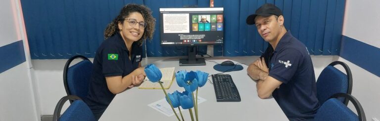 Neste dia, 11 de junho de 2025, na sala de tutoria da OTICS Bangu, Elvis Ferreira e Jaqueline Nascimento (Apoiadores do RAP da Saúde, Saúde